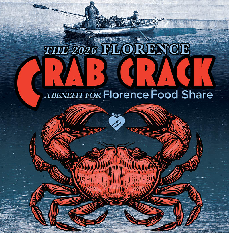 Join us for the Florence Food Share Crab Crack on Friday, February 27, from 5 to 7 p.m. at the Florence Events Center. Enjoy a delicious Oregon crab dinner with pasta salad, coleslaw, garlic bread, and melted butter — all while supporting a great cause. Tickets are on sale now!